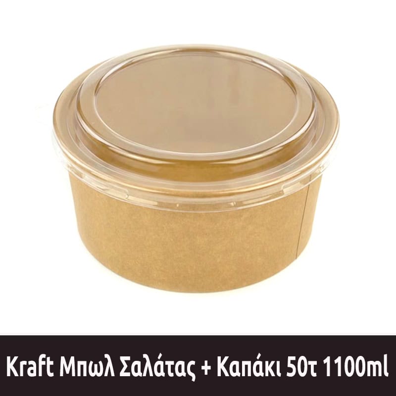 Kraft Μπωλ Σαλάτας + Καπάκι 50τεμ 1100ml – (32oz) – (165mm)