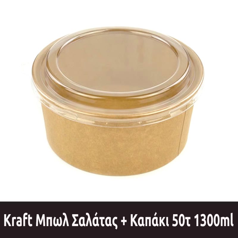 Kraft Μπωλ Σαλάτας + Καπάκι 50τεμ 1300ml – (38oz) – (185mm)