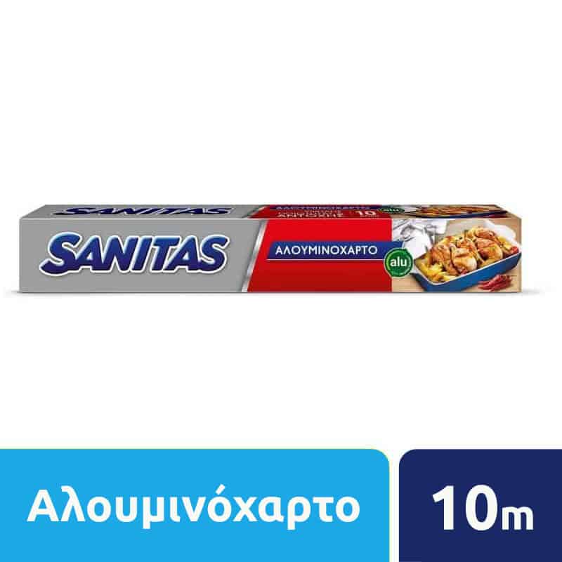 To αλουμινόχαρτο Sanitas είναι ιδανικό για τη συντήρηση και μεταφορά των τροφίμων ενώ παράλληλα προστατεύει το φαγητό σας κατά το μαγείρεμα ώστε να ψήνεται ομοιόμορφα. Από κράμα αλουμινίου υψηλής ποιότητας και αντοχής διαφυλάσσει τα τρόφιμά σας από το φως και τις οσμές και διαθέτει το κατάλληλο πάχος ώστε να μη σκίζεται!
